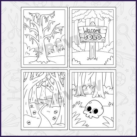 - Choose your favorite Haunted Woods Coloring Page to start coloring.