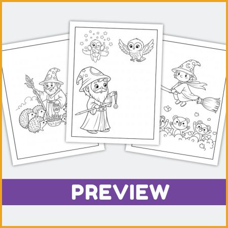 Children color wizard-themed pictures and can add their own creative touches like stars, sparkles, or potions. Encourages imagination and storytelling while coloring.