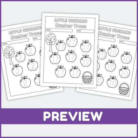 Use this worksheet to help children learn to trace and write numbers while enjoying a fun apple orchard theme. Great for home, classroom, or homeschool math practice.