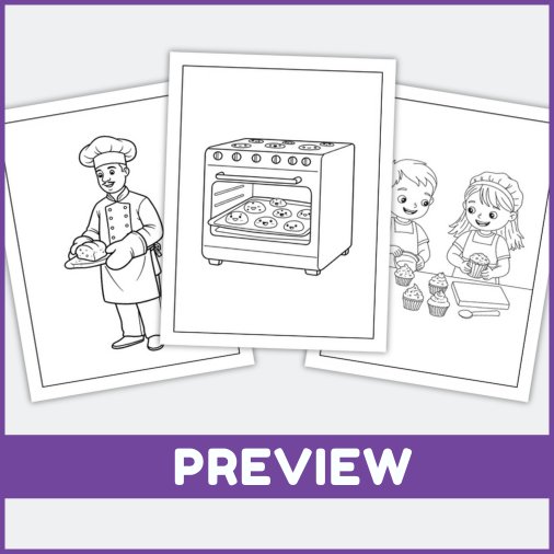Baking Scene Coloring Pages for Kids – Fun Kitchen and Cooking Printable