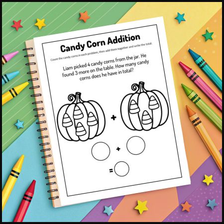 The Candy Corn Counting & Addition Activity Worksheets for Kids is the perfect resource to make math practice exciting and engaging. Designed for young learners, these worksheets combine playful candy corn themes with important addition skills. Inside the Candy Corn Counting & Addition Activity Worksheets for Kids, students will practice solving number block problems as well as fun candy corn word problems. Children in Kindergarten (K) will enjoy identifying numbers and solving very simple problems. Students in Elementary School and especially 1st Grade and 2nd Grade will benefit from extra practice with counting and adding small numbers. The Candy Corn Counting & Addition Activity Worksheets for Kids also challenge older students in 3rd Grade, 4th Grade, and 5th Grade by asking them to carefully read word problems and find the correct answers. Teachers and parents can use the Candy Corn Counting & Addition Activity Worksheets for Kids in classrooms or at home to make learning fun during fall or Halloween seasons. These worksheets not only help with addition but also strengthen problem-solving and reading comprehension skills. Whether you are teaching in the USA, Canada, UK, or other English-speaking countries, the Candy Corn Counting & Addition Activity Worksheets for Kids offer a delightful way to combine math and holiday fun. Each page is created with clear, simple designs so children can focus on practicing math while enjoying the candy corn theme.