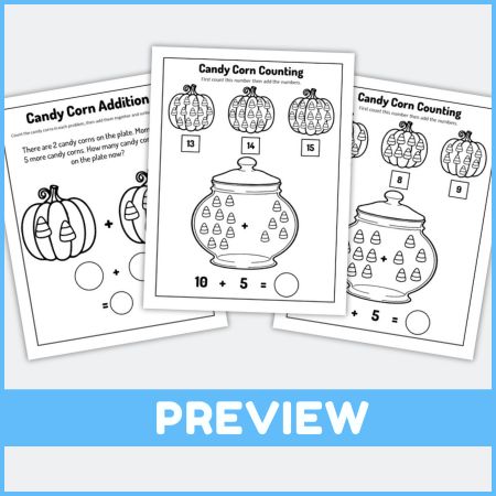 Candy Corn Counting & Addition Activity Worksheets for Kids