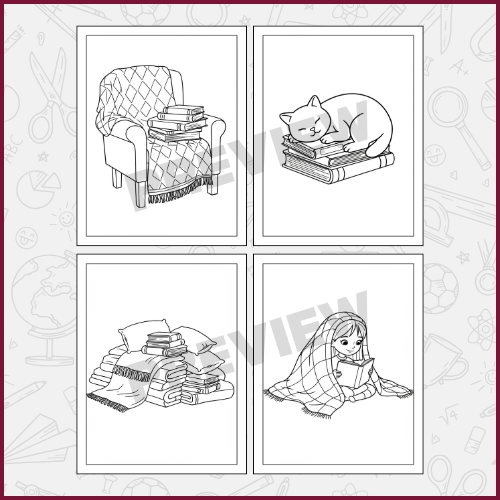 Cozy Blanket and Books Coloring Pages can be used at home, in classrooms, during quiet time, or as a fun activity for parties. Ideal for solo play or group activities to encourage creativity and concentration.