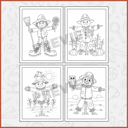 Welcome to the Fall Scarecrow Coloring Pages for Kids – Fall Scarecrow Coloring Worksheet, a delightful way to celebrate the beauty of autumn through art! This engaging collection includes 21 fun-filled pages featuring adorable scarecrows, pumpkins, leaves, and harvest scenes that children will love to color. The Fall Scarecrow Coloring Pages for Kids are designed to inspire creativity and imagination in every child. Whether your child is in Kindergarten (K), 1st Grade, 2nd Grade, 3rd Grade, 4th Grade, or 5th Grade, these worksheets provide a perfect mix of fun and learning. Teachers and parents can use Fall Scarecrow Coloring Pages for Kids as classroom art projects, home activities, or seasonal decorations. The clear, bold outlines make it easy for younger learners, while older students can enjoy adding creative details and shading. Each page in the Fall Scarecrow Coloring Pages for Kids encourages artistic expression and helps develop fine motor skills. Kids will have endless fun coloring their favorite scarecrow scenes while exploring the colors of fall—reds, yellows, oranges, and browns. Perfect for Elementary School classrooms or cozy coloring time at home, the Fall Scarecrow Coloring Pages for Kids make autumn art exciting and educational. Bring fall to life one color at a time!
