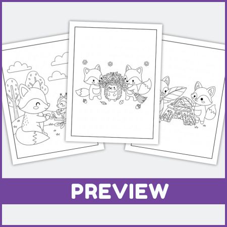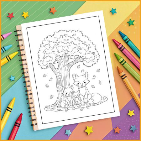 Color adorable fox families in cozy fall settings—leaves, trees, and woodland scenes. Great for storytelling, fine motor practice, and art time.