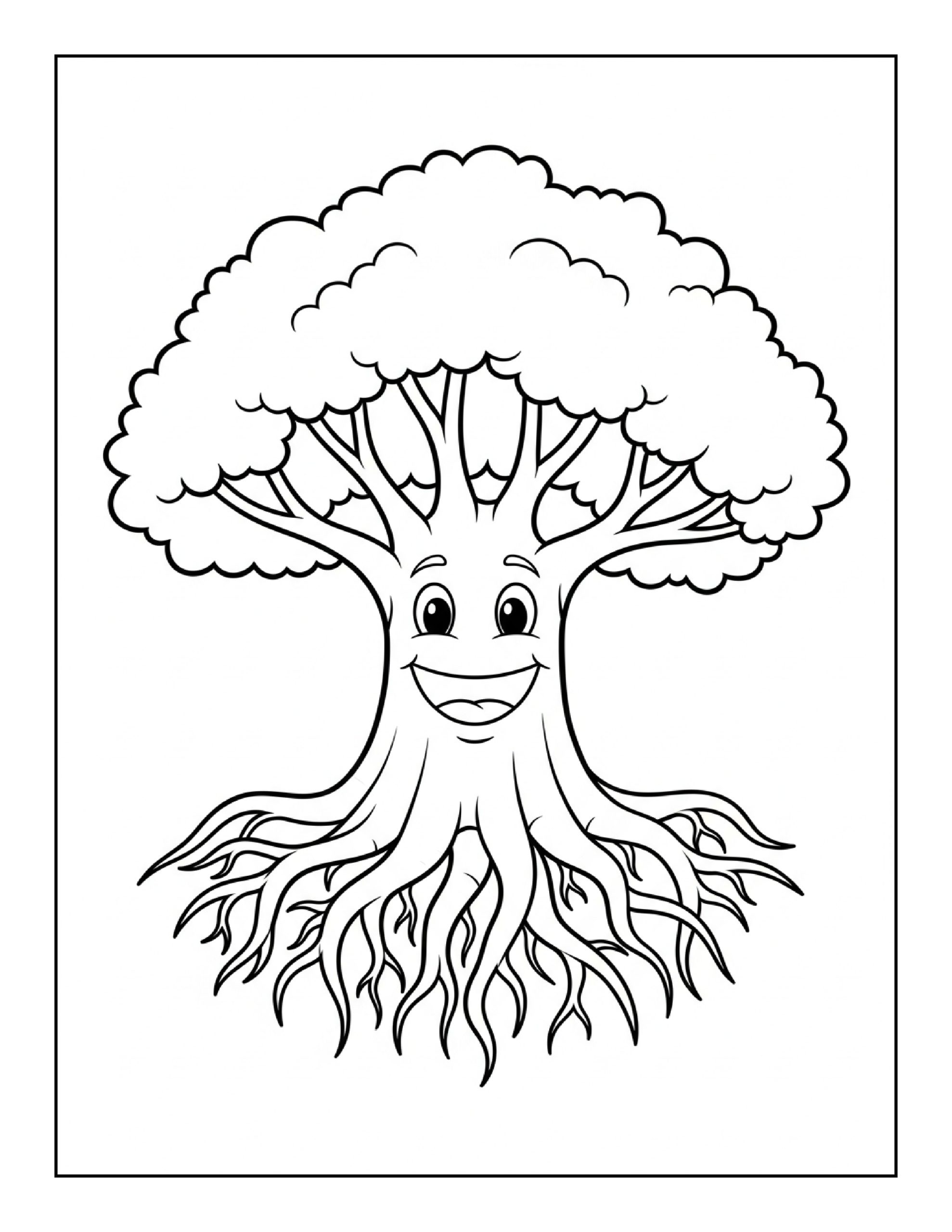 Cute Happy Tree Coloring Pages – Fun Nature Printables for Kids