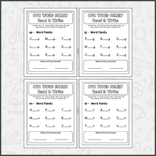 CVC Word Family Worksheets – Read and Write Phonics Practice for Kids