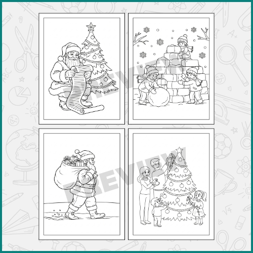 Coloring festive scenes, characters, and winter patterns. Add your own designs, doodles, and creativity to personalize each page.