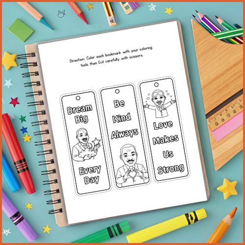 Dr. Martin Luther King Jr. Inspirational Bookmarks – Black History Month Coloring Craft