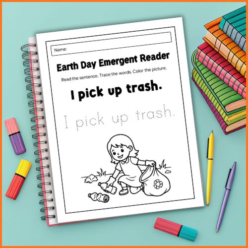 Earth Day Emergent Reader Worksheet – Reading, Tracing and Coloring Activities for Kids