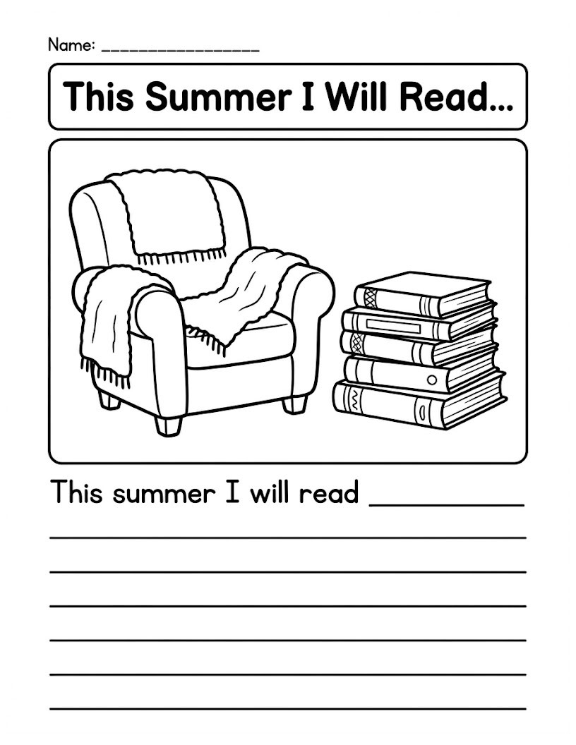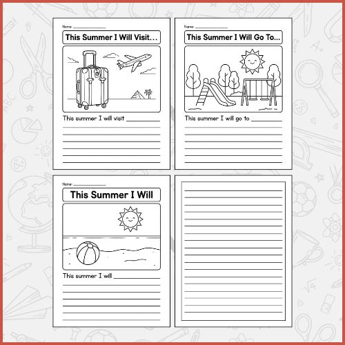 Write your name at the top of each page. Read the sentence starter carefully and think about your answer. Complete the sentence by writing your own idea about your summer plans. Work on one page at a time and complete all pages or only the ones assigned. Take time to write clearly and express your thoughts in full sentences.