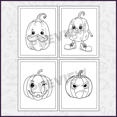 Color each page with your favorite shades, mix colors, and create your own funny pumpkin characters. Add decorations or background designs to make it unique!