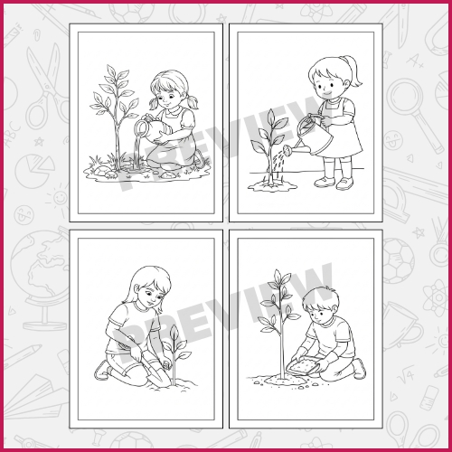 Gardening and Tree Planting Coloring Worksheets for Kids – Fun Nature Printables