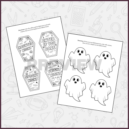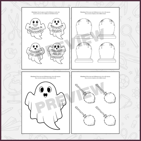 Choose your favorite shape, color and write on it, cut it out, and decorate the bulletin board. Mix and match designs to create a unique Halloween display.