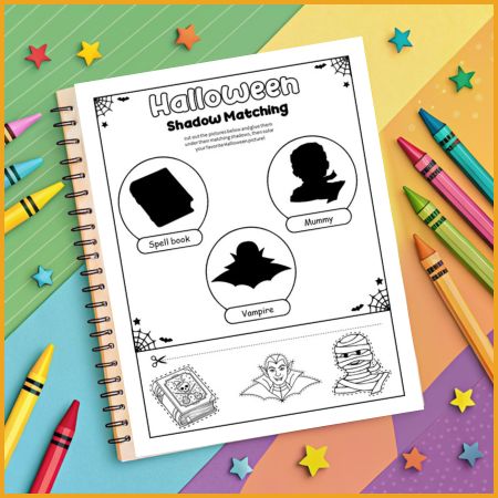 • Print the Worksheets: Print all pages of the Halloween Shadow Matching Activity Worksheets for Kids.