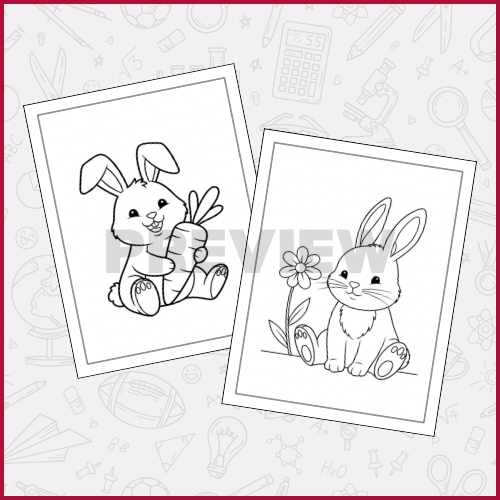 Children color adorable bunny illustrations using their favorite colors while adding creative details like patterns, shapes, and backgrounds to make each page unique.