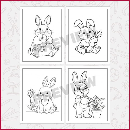 Overall, this coloring worksheet collection combines fun and learning, offering children an opportunity to express themselves artistically while enjoying cute and playful bunny designs.
