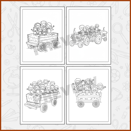 The Hayride Coloring Pages for Kids – Fun Fall & Harvest Coloring Worksheets is a joyful seasonal activity book made especially for young learners who love fall fun and creative coloring. Inside this exciting collection, children will discover a variety of hayride scenes filled with pumpkins, friendly animals, fall leaves, and cozy harvest themes. These Hayride Coloring Pages for Kids – Fun Fall & Harvest Coloring Worksheets are perfect for Elementary School, Kindergarten (K), 1st Grade, 2nd Grade, 3rd Grade, 4th Grade, and 5th Grade students, offering age-appropriate designs that spark imagination and hands-on learning. Teachers and parents will love how these Hayride Coloring Pages for Kids – Fun Fall & Harvest Coloring Worksheets support creativity, fine motor skills, focus, and seasonal vocabulary. Whether used in a classroom, homeschool setting, or just for family fun, each page encourages children to explore colors, shapes, and fall themes at their own pace. Students can enjoy bright hayrides, scenic harvest fields, playful farm animals, and autumn patterns that inspire storytelling and creativity. The Hayride Coloring Pages for Kids – Fun Fall & Harvest Coloring Worksheets can be used during literacy centers, fall festivals, morning work, art time, or as a calming independent activity. Children can color using crayons, markers, or colored pencils while adding their own custom details. These worksheets make learning fun and engaging during the fall season, helping students feel connected to nature and harvest traditions.