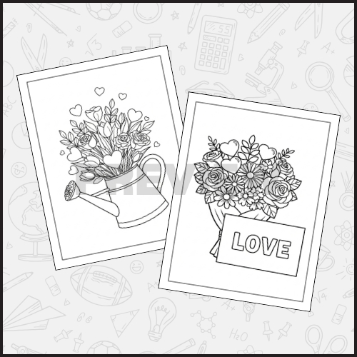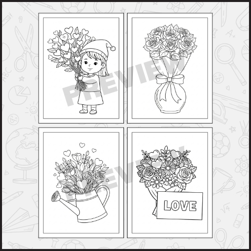 Heart and Flower Valentine Coloring Pages – Fun Valentine Bouquet Sheets for Kids