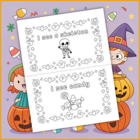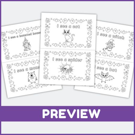 Read aloud the I See Halloween – Halloween Emergent Reader Book together, then have children color each page and practice reading independently using the pictures as clues.