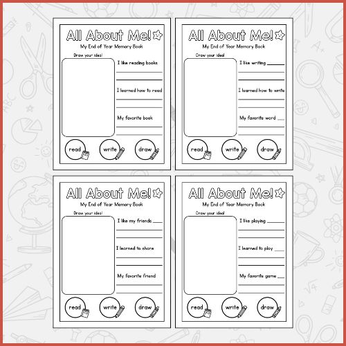 Kindergarten Memory Book Printable – All About Me End of Year Activity