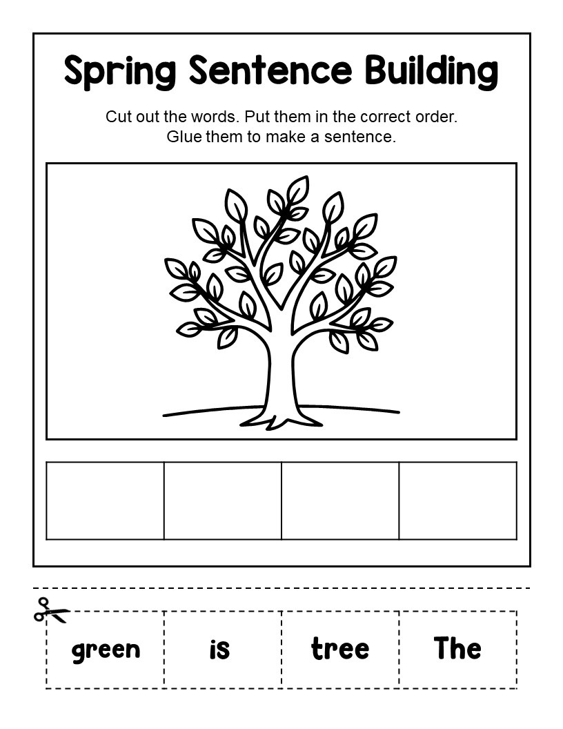 Kindergarten Spring Sentence Activities – Cut and Paste Sentence Practice