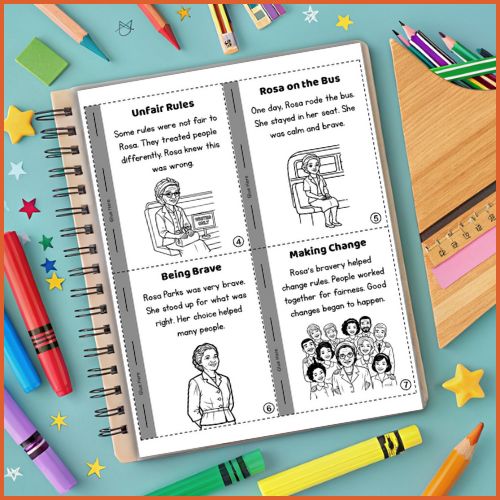 Use this mini book worksheet to teach students about Rosa Parks, civil rights, and the importance of standing up for justice. It is perfect for classroom lessons, Black History Month activities, homeschool, or individual learning at home.