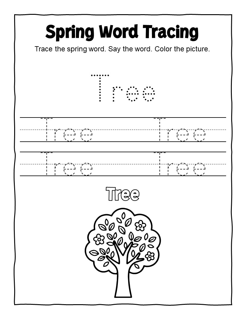 Learn to Read and Write Spring Words – Preschool Practice Sheets