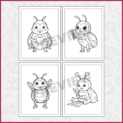 - Coloring cute lovebugs and heart-themed designs