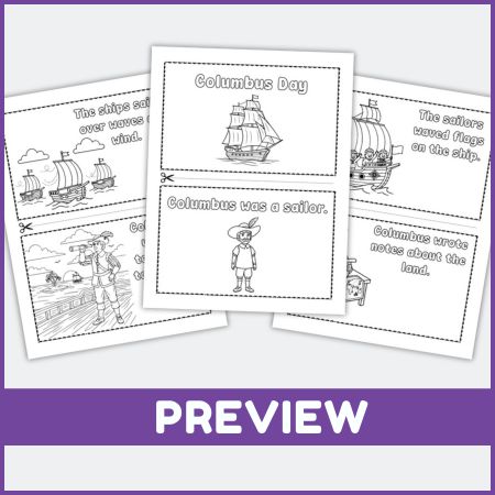 Read, color, cut, and assemble your own mini book to celebrate Columbus Day! Carefully follow the directions on each page to build your storybook. Once completed, enjoy reading your Columbus Day Emergent Reader Mini Book – Read, Color, Cut, and Staple aloud to family or friends.