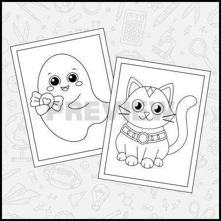 Halloween-themed coloring pages featuring pumpkins, ghosts, bats, and other spooky-cute designs.