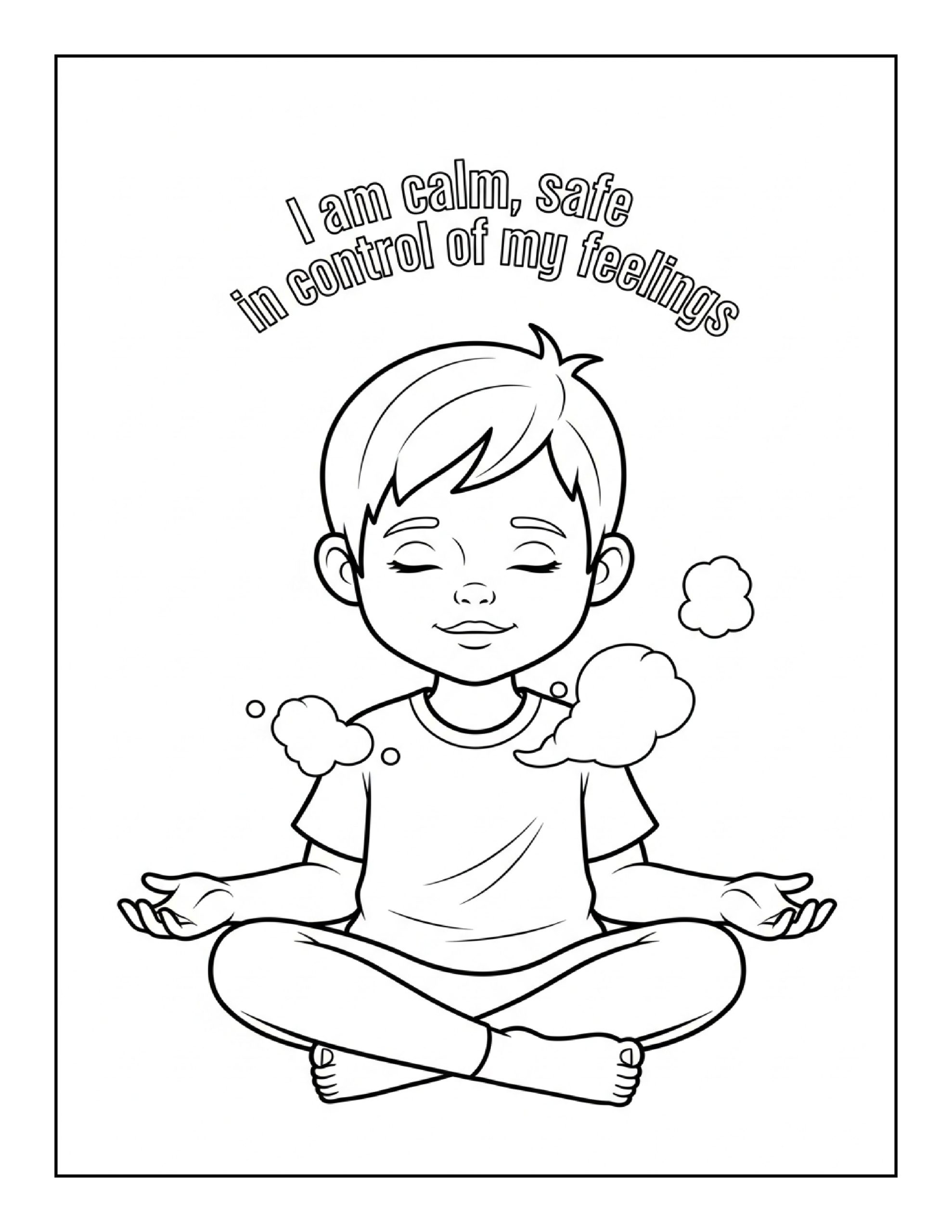 Students color affirmation-themed pages while reading and reflecting on positive messages. Children are encouraged to discuss feelings, practice mindful breathing, and share how affirmations make them feel.