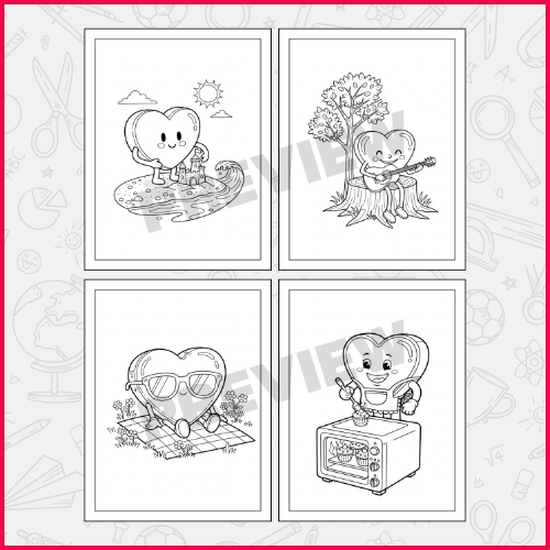 These coloring pages are suitable for preschool and kindergarten children. They can be used at home, in classrooms, during art time, or as part of Valentine’s Day celebrations. They are designed to enhance creativity, fine motor skills, and color recognition.