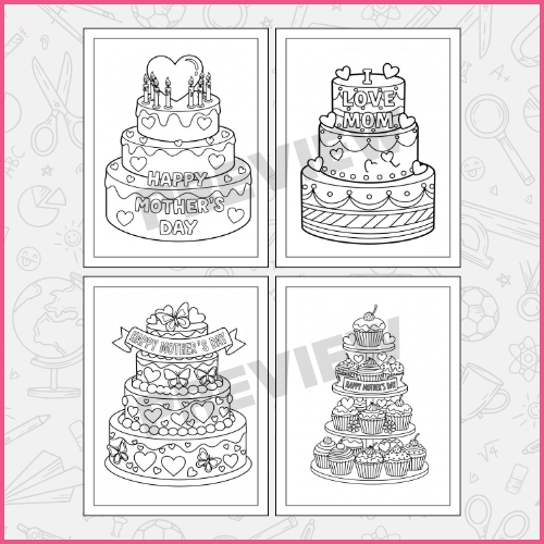 Look through the pages and choose a favorite cake design to begin. Think about different colors and how they can make the picture bright and special. Color the page with creativity, taking time to enjoy the process. Extra details like hearts, patterns, or decorations can be added to make the artwork more unique. The finished page can be shared as a thoughtful Mother’s Day gift or displayed proudly.