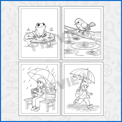 Rainy mornings bring a unique sense of coziness and imagination, and this collection of coloring pages captures that feeling perfectly for kids. Each page is filled with delightful rainy day scenes, from umbrellas and puddles to charming indoor moments, designed to spark creativity and keep little hands busy. These worksheets provide children an engaging way to express their artistic ideas while exploring colors, patterns, and textures. The designs are simple yet fun, making it easy for kids of all ages to enjoy without feeling overwhelmed. This coloring activity not only entertains but also encourages focus, hand-eye coordination, and fine motor skills. Children can experiment with different color combinations, blending bright and cheerful hues with soft and calm shades to create unique masterpieces. The open-ended nature of the pages invites imagination, allowing kids to add their own doodles, designs, or magical touches to the scenes. The pages are perfect for a quiet morning indoors, a rainy day activity, or even as part of a classroom or homeschool project. They are also great for helping children unwind, relax, and explore self-expression in a playful way. Parents and educators will appreciate the balance of fun and learning, as kids engage in an activity that enhances creativity while staying mindful and focused.