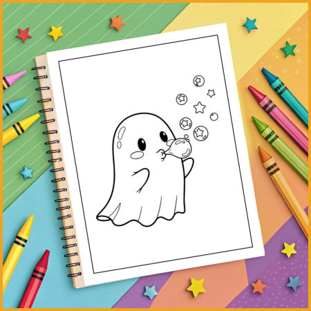 Pick your favorite ghost page, color using your choice of bright or pastel shades, and decorate the ghost and its accessories. Share your artwork with friends or hang it as part of your Halloween decorations. Repeat with every page for endless fun!