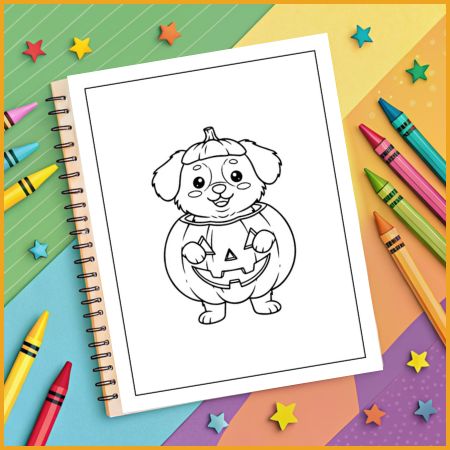 Open the worksheet and pick your favorite spooky dog design. Start by coloring large shapes like the dog’s body or pumpkin, then fill in smaller costume details. Add extra decorations such as stars, bats, or webs. Once finished, cut out or display your artwork as fun Halloween decorations.