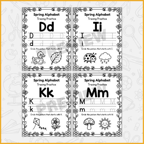 Introduce young learners to the joys of letters with the Printable Spring Letter Tracing Worksheets A to Z Alphabet Practice for Kids. This worksheet set provides a fun and educational way for preschool and kindergarten children to practice each letter of the alphabet. Every page is designed with a spring theme, including images of flowers, butterflies, leaves, and other seasonal elements that make learning engaging and visually appealing. The worksheets focus on both uppercase and lowercase letters, helping children develop strong handwriting skills while reinforcing letter recognition. Each letter page encourages early literacy through tracing activities that strengthen fine motor skills and improve hand-eye coordination. Alongside tracing, children are introduced to letter sounds through picture identification exercises, where they can circle the image that begins with the targeted letter sound. This multi-sensory approach ensures that kids not only learn to write letters but also understand the connection between letters and sounds. The worksheets are ideal for use at home, in preschool classrooms, or for homeschooling. Teachers and parents will appreciate the structured format, which gradually builds a child’s confidence in writing and identifying letters while keeping learning playful and seasonal. The spring-themed design adds an element of excitement to learning sessions, making the practice feel less like work and more like a creative activity.