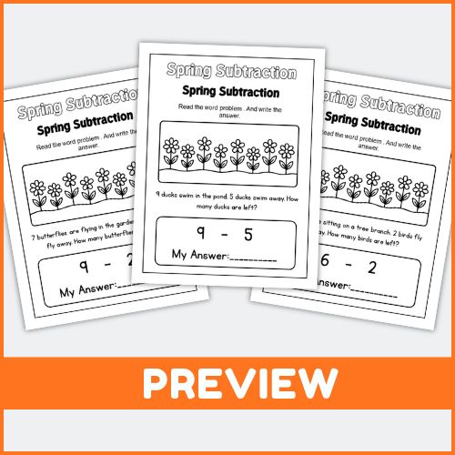 Spring Math Subtraction Word Problems Worksheets for Kids – Fun Seasonal Activity