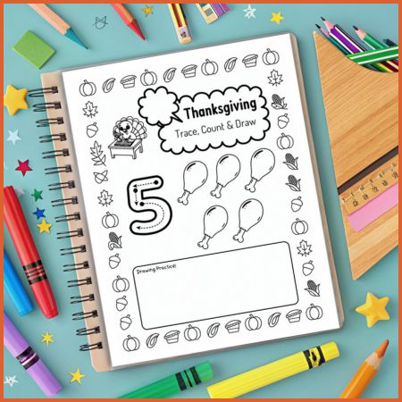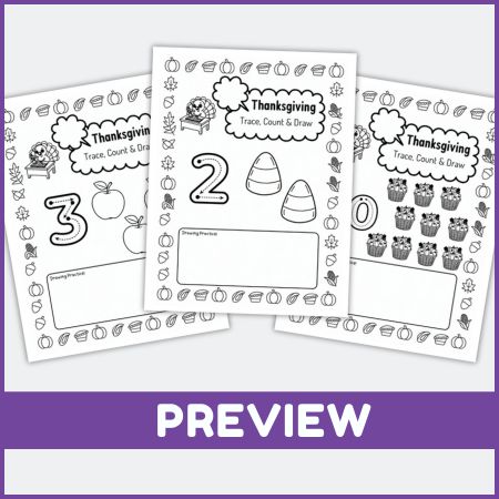 Use these worksheets in classrooms, homeschool lessons, or at home to help children practice tracing, counting, and drawing Thanksgiving-themed objects while improving number recognition and handwriting skills.