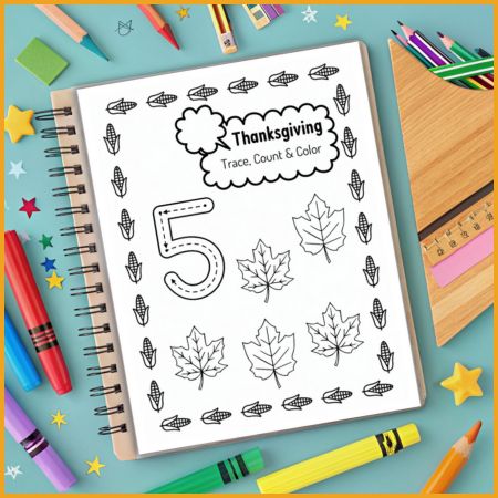 Make learning fun this Thanksgiving with Thanksgiving Trace and Color Numbers Worksheets for Kids – Thanksgiving Math Fun. This engaging workbook is perfect for Elementary School children, including Kindergarten (K), 1st Grade, 2nd Grade, 3rd Grade, 4th Grade, and 5th Grade. Students in the United States, Canada, Australia, and other English-speaking countries can enjoy hands-on math practice while celebrating the holiday. In Thanksgiving Trace and Color Numbers Worksheets for Kids – Thanksgiving Math Fun, each page features large, easy-to-trace numbers that help students improve their handwriting and number recognition skills. After tracing, kids count Thanksgiving-themed images like turkeys, pumpkins, and pies, reinforcing counting and one-to-one correspondence in a fun and interactive way. Once counting is complete, children can color the pictures to make each Thanksgiving scene vibrant and creative. Perfect for teachers, parents, and homeschoolers, Thanksgiving Trace and Color Numbers Worksheets for Kids – Thanksgiving Math Fun supports early math skills while keeping learning enjoyable. It encourages focus, fine motor skill development, and creativity. These worksheets are designed for Elementary School students, from Kindergarten (K) to 5th Grade, and are suitable for children in the United States, Canada, United Kingdom, and Australia. Use them in classrooms, at home, or as fun holiday activities to help children practice numbers, counting, and coloring during the Thanksgiving season.