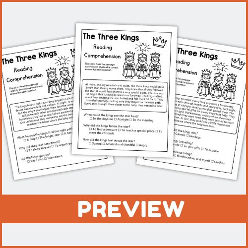 Introduce your students to the story of The Three Kings Reading Comprehension Worksheets for Kids – The Journey of the Three Kings. These worksheets are perfect for Elementary School, Kindergarten (K), 1st Grade, 2nd Grade, 3rd Grade, 4th Grade, and 5th Grade learners around the world. Each page is designed to engage children with reading passages and multiple-choice questions that test comprehension, memory, and critical thinking skills. Using The Three Kings Reading Comprehension Worksheets for Kids – The Journey of the Three Kings, students can explore the journey of the Three Kings, understand the gifts they brought, and learn about the importance of their travels. These worksheets are suitable for children in the United States, Canada, the United Kingdom, Australia, and other English-speaking countries, supporting literacy development across borders. The passages are written in simple language suitable for Kindergarten (K), 1st Grade, and 2nd Grade, while the questions encourage higher-order thinking for 3rd Grade, 4th Grade, and 5th Grade students. Teachers and parents can use The Three Kings Reading Comprehension Worksheets for Kids – The Journey of the Three Kings to promote independent reading, classroom discussion, and family learning time. By completing each worksheet, children will not only improve their reading comprehension but also gain an appreciation for the story of the Three Kings and their journey. These worksheets provide a fun, educational, and culturally enriching activity for all grade levels mentioned.