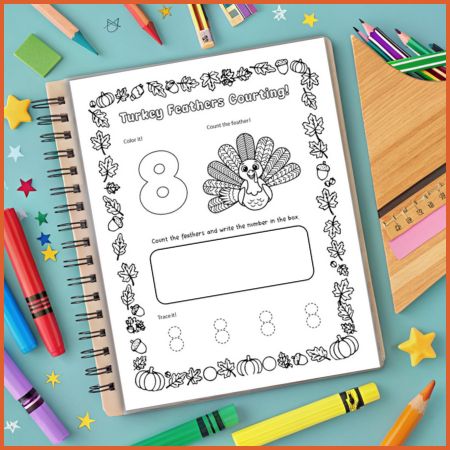 Perfect for classroom activities, homeschool lessons, or at-home fun. Encourages counting, number recognition, tracing skills, and creativity. Ideal for Thanksgiving or fall-themed learning.
