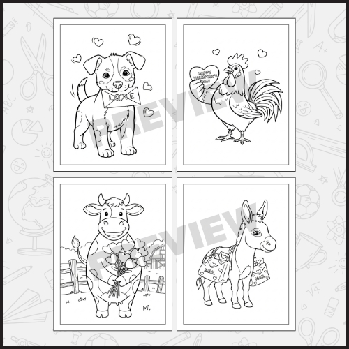 Valentine Animals Coloring Fun – Kids Cute Animal Valentine Coloring Pages