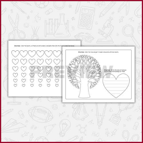 Valentine’s Day Love Tree Craft and Writing Activity – Valentine Writing Crafts, Heart Tree Craft for Kids is a creative and meaningful Valentine’s Day resource designed to combine art, writing, and fine motor skills in one engaging activity. This printable packet is perfect for Elementary School, Kindergarten (K), 1st Grade, 2nd Grade, 3rd Grade, 4th Grade, and 5th Grade learners. With Valentine’s Day Love Tree Craft and Writing Activity – Valentine Writing Crafts, Heart Tree Craft for Kids, students color a tree, write a loving message, and create heart-shaped “love leaves” to decorate their own special Valentine tree. This activity encourages self-expression, kindness, and creativity while supporting early writing development. Teachers and parents in the United States, Canada, United Kingdom, and Australia will love how Valentine’s Day Love Tree Craft and Writing Activity – Valentine Writing Crafts, Heart Tree Craft for Kids fits easily into February lesson plans, Valentine’s Day centers, morning work, or holiday craft time. This resource is ideal for classroom use, homeschool settings, and small group activities. Students can write messages for family members, friends, teachers, or anyone they care about. Valentine’s Day Love Tree Craft and Writing Activity – Valentine Writing Crafts, Heart Tree Craft for Kids also helps build fine motor skills through coloring, cutting, and pasting. Whether used as a keepsake project or a festive writing activity, Valentine’s Day Love Tree Craft and Writing Activity – Valentine Writing Crafts, Heart Tree Craft for Kids adds warmth and joy to your Valentine’s Day celebration.