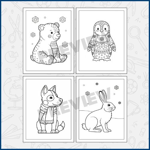 - Flip through the pages and choose your favorite winter animal to color.