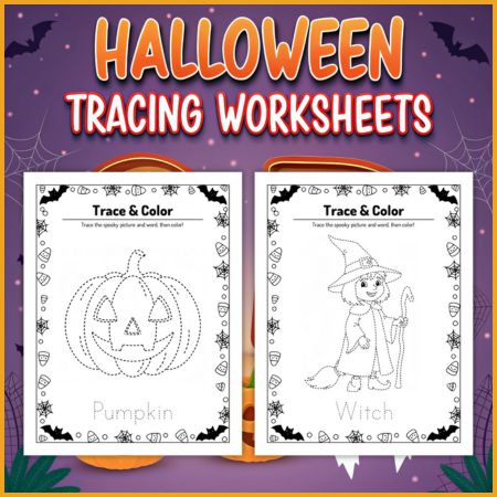 Easy Halloween Tracing Worksheets and Coloring Activities for Preschool